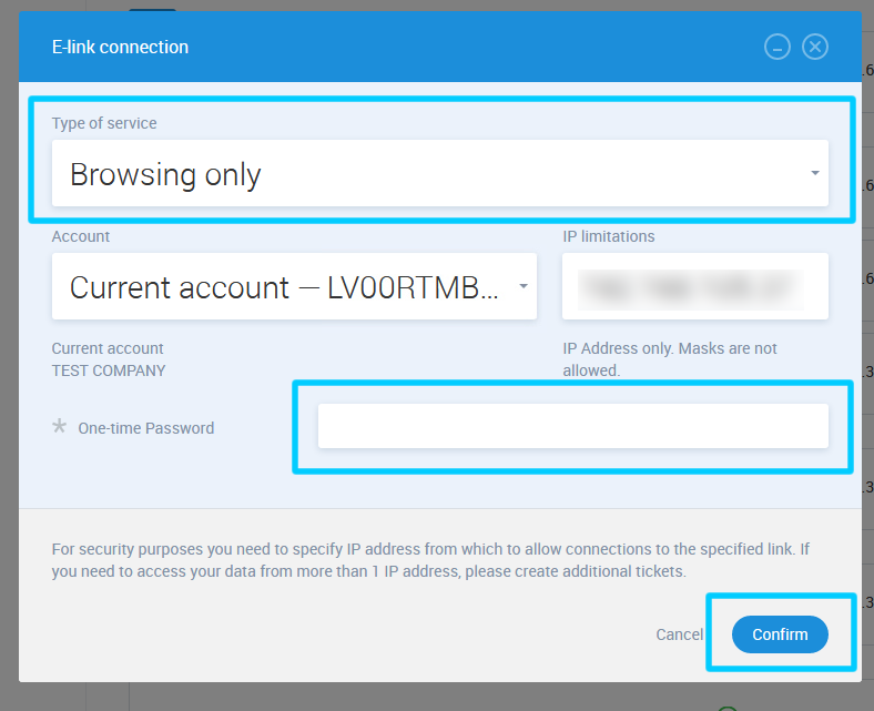 To activate the Enterprise Link, select the account in the iRietumu settings and click “Activate”.