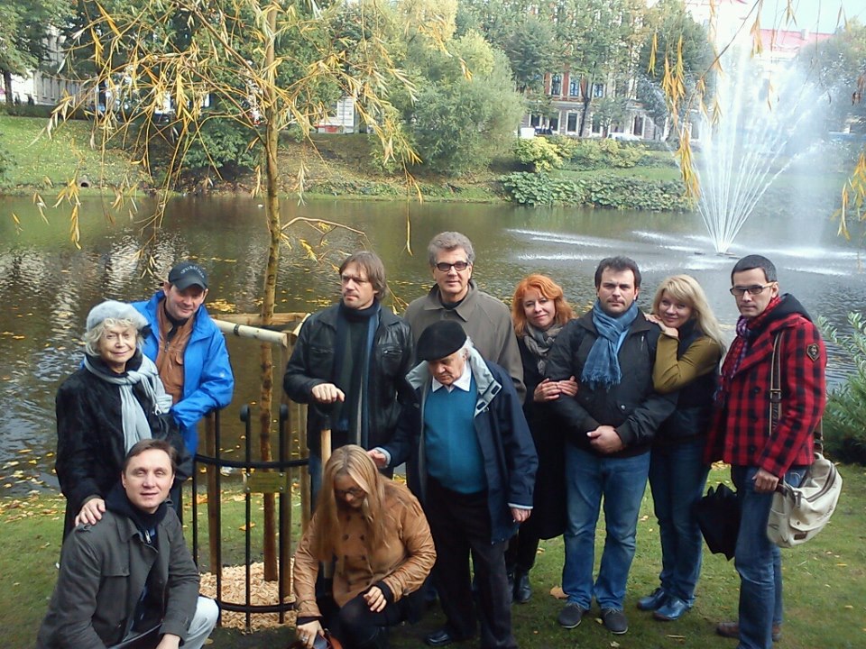 Сегодня актеры московского театра им. Маяковского и питерской Александринки, пребывающие в Ригу в рамках театрального фестиваля "Золотая маска в Риге", посадили пять саженцев золотолистой ивы на берегу Рижского городского канала. Ранее на этом месте уже росли ивы, но их сгрызли рижские бобры.